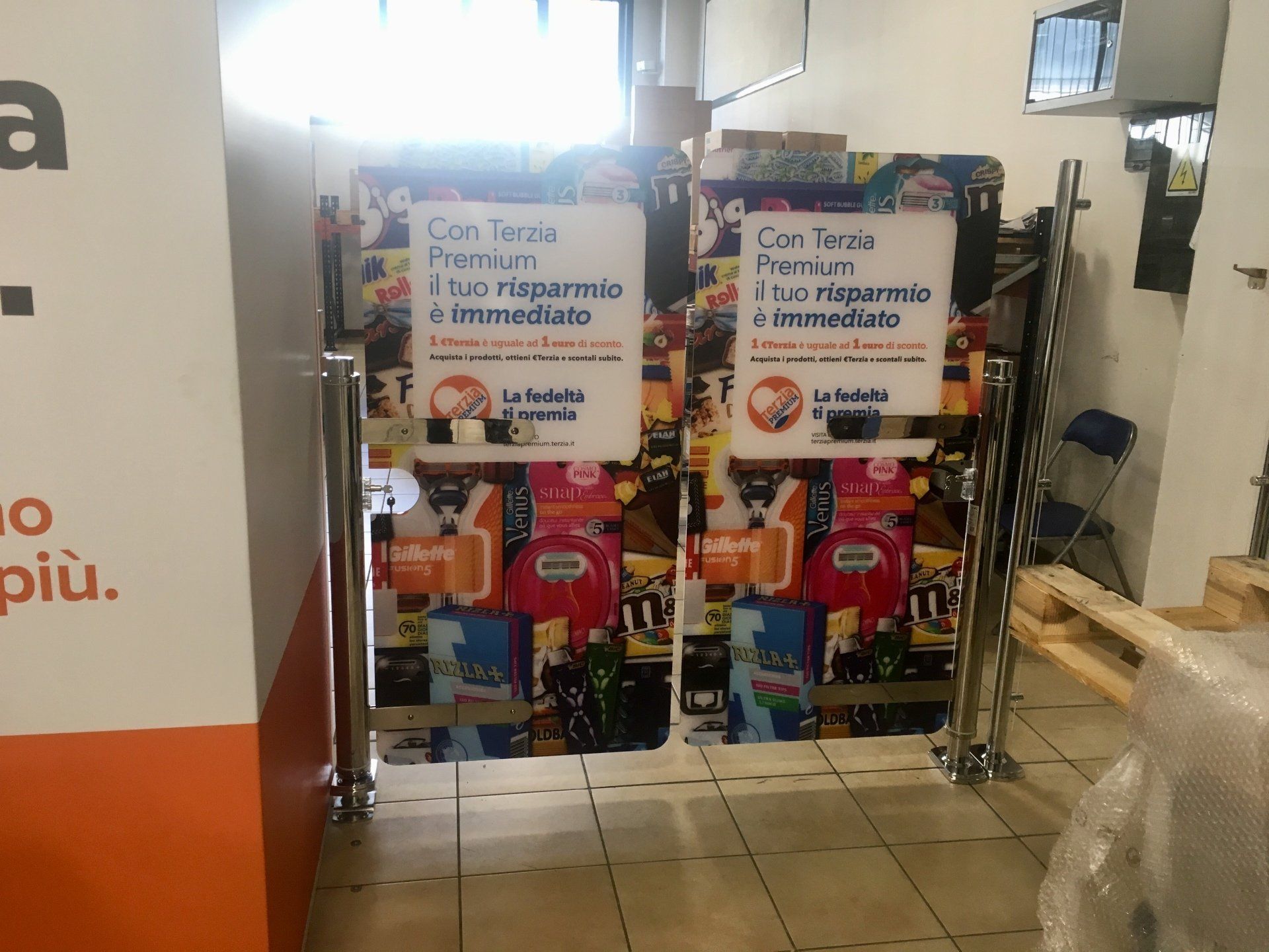 Barriere per il controllo dei flussi e dei percorsi all'interno del punto vendita. Pannelli in griglia cromata, in plexiglass trasparenti o supporti di stampa facilmente intercambiabili!!!