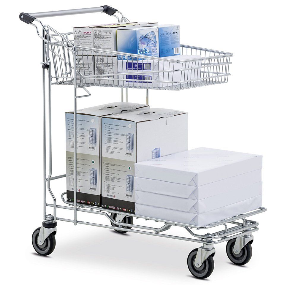 - Pratico cestino resistente con 4 ruote adatto per punti vendita di qualsiasi tipo