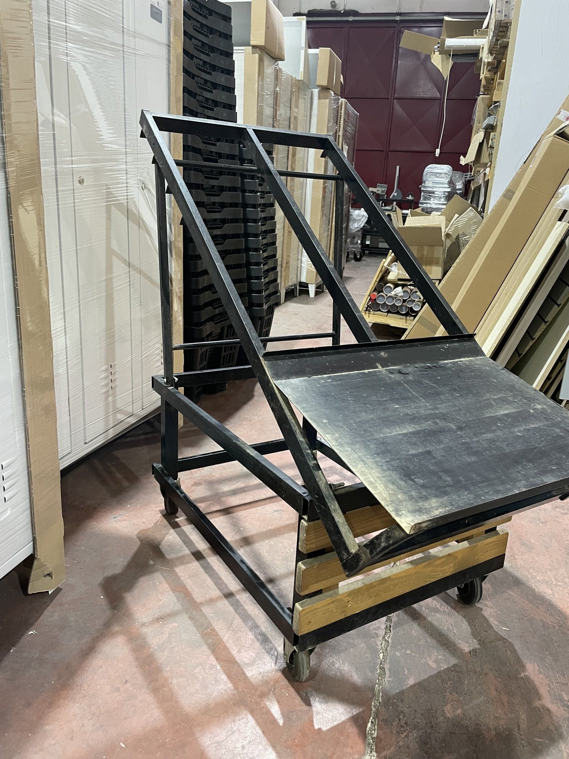 Bancarella Ortofrutta, 3 inclinazioni telaio nero, doghe rovere su ruote 2 con freno.