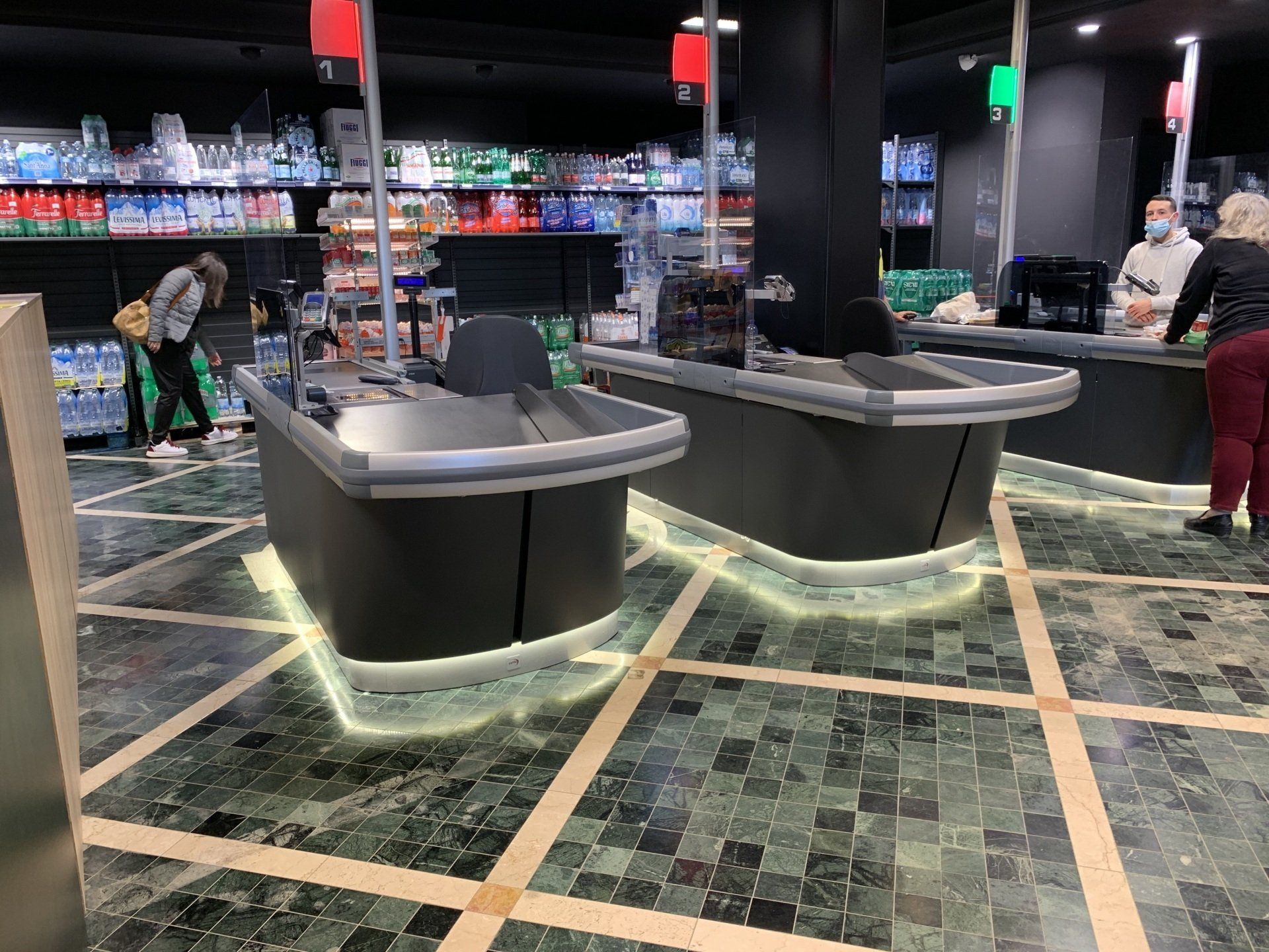 Fornitura scaffalature, banchi cassa, barriere, carrelli
