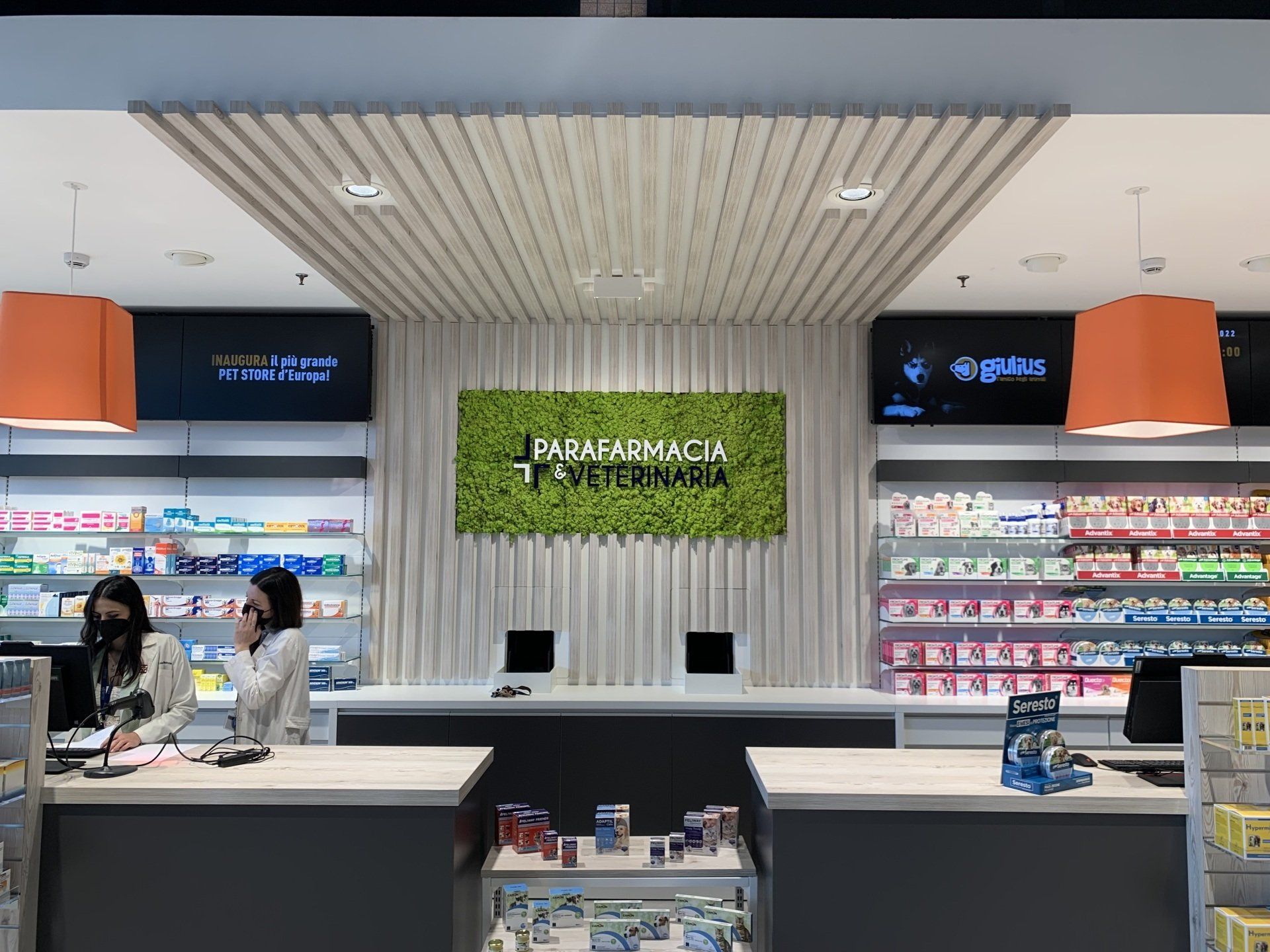 A Giugno 2025 ha aperto il primo punto vendita della catena Petsi a Milano, 250mq con banco farmaci. Noi abbiamo contribuito al layout e le forniture di tutti gli arredi e illuminazione