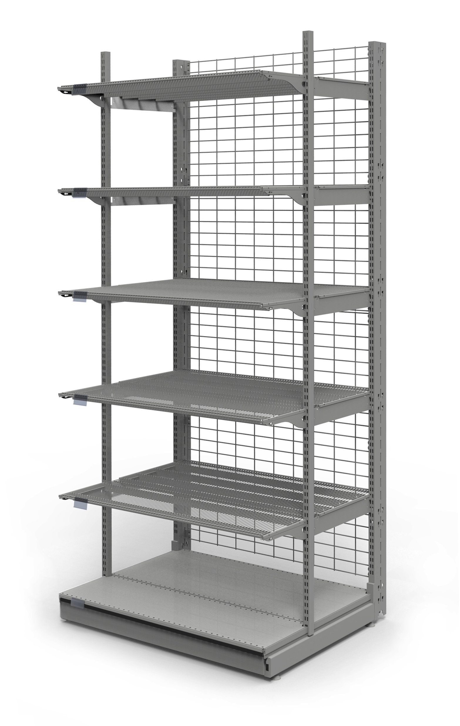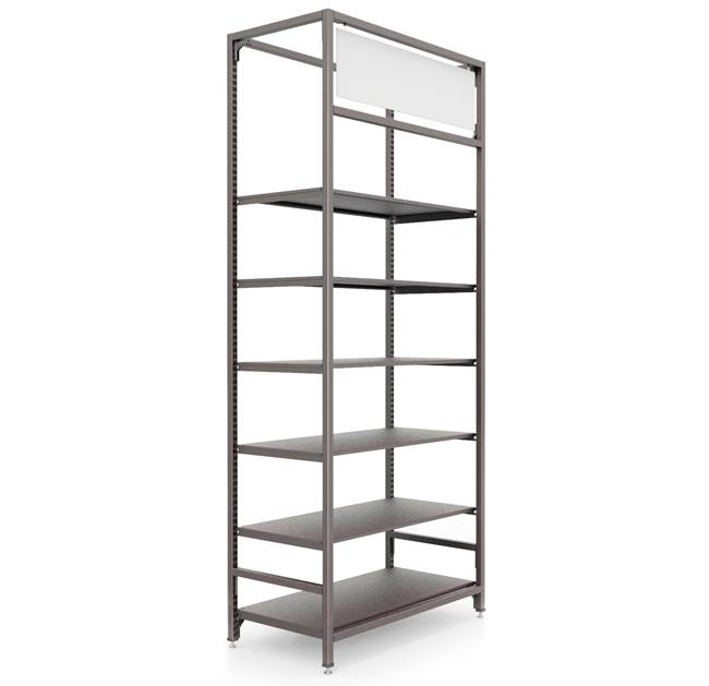 System25 è una linea completa di scaffalature, con colonna ad asola passo 25 mm e dotata di una ricca serie di accessori per il merchandising, che aumenta gli spazi espositivi e agevola le vendite.